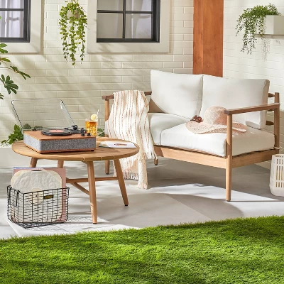 Groove to your favorite songs with this 3-Speed Record Player from Hearth & Handâ„¢ with Magnolia. Featuring Bluetooth connectivity, this three-speed turntable lets you connect easily to your smartphone, tablet, computer or a Bluetooth speaker. The built-in speakers with pitch control offer superior sound, while the three-speed design plays all three standard sizes of vinyl records. Featuring a vintage-inspired suitcase design with a wooden base and woven gray fabric accents, it’s sure to add classic style to your decor. Easy to carry, it features a transparent cover to keep the record safe.