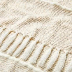 Add elegance and textured appeal to your home decor with the Heathered Stripe Woven Throw Blanket from Hearth & Handâ„¢ with Magnolia. This woven throw blanket features a neutral shade with a striped pattern in a heathered finish for a sophisticated look that complements most of your settings and decor styles. Adorned with fringes along the ends, this stripe throw blanket helps keep you warm and toasty whether you’re binging a show on the sofa or just relaxing after a long day.