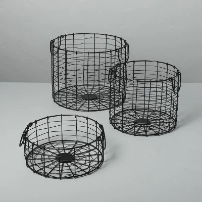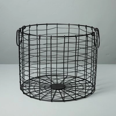 Bring a versatile accent to your home decor with this Round Wire Storage Basket with Handles from Hearth & Handâ„¢ with Magnolia. Featuring a wired construction, this metal storage basket helps you see through your essentials with ease. This black storage basket mixes well with your decor whether you organize your books, blankets or any other items. Easy to move with the built-in handles, this round storage basket can displayed along your entryway, living room or any other area.