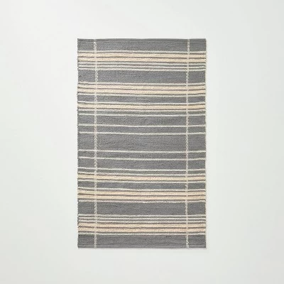 Add textured style to your home with this Wool Blend Variegated Stripe Area Rug from Hearth & Handâ„¢ with Magnolia. Featuring an allover variegated stripe design on a dark gray background, this decorative runner rug brings a combination of simple comfort and timeless style to your existing decor. Crafted from cotton and wool, this woven area rug features a flat-pile construction, making it highly versatile and easy to place in your living room, hallway, entryway and more.